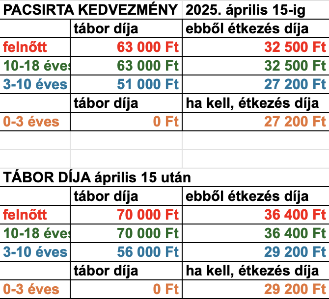 ÁRAK: az alábbi táblázatban láthatod a tábor árait.